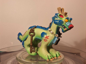 The Key Dragon is a sculpture created during the "Clay to Play" workshop, hosted by GameLab and Moonhood. This page documents the process of sculpting and painting it.
